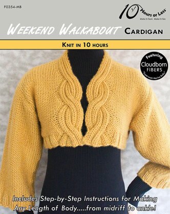 Hop on the high-fashion train with a quick cropped cardigan! Knitted in Reverse Stockinette, the sleek silhouette features ribbed cable columns that neatly frame the neck. Accented with dropped shoulders and three-quarter sleeves, it’s a thoroughly modern take on a timeless classic. And with our step-by-step instructions for making any length of body, you can customize your cardigan with a length that’s right for you…..from midriff to ankle!