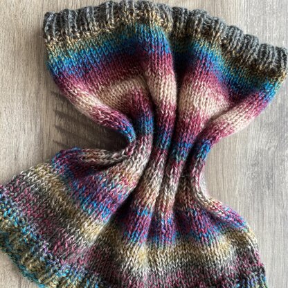 Stay warm and fashionable this winter with this oversized cowl. The yarn does all the work with its beautiful colors that seem to melt right into each other. Cartwheel has over 300 yards so you can knit this cowl that is big enough to use as a hood on windy winter days.