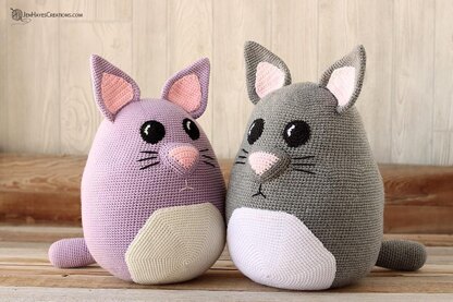 The Weighted Crochet Snuggle Cat when finished measures approximately 16 inches (40.6 cm) tall from the base to the tip of the ear and approximately 32 inches (81cm) around at the widest point of the body. Yarn choice and stuffing technique may cause some variation from this measurement, but it is a larger project.