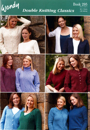 Wendy Double Knitting Classics knitting pattern book 295 - 6 classic designs to knit in any standard DK yarn. Featuring warm and cozy sweaters, with g