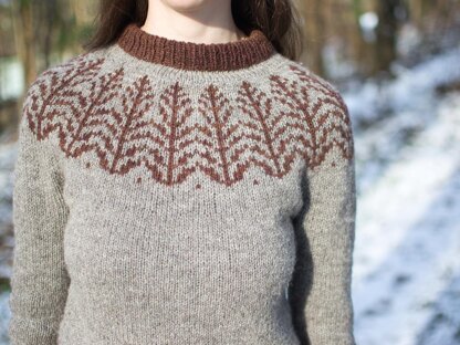 Weod is a DK-weight jumper with a stranded colourwork yoke, hem and cuffs, with botanically inspired motifs. It's worked from the top down in the round.