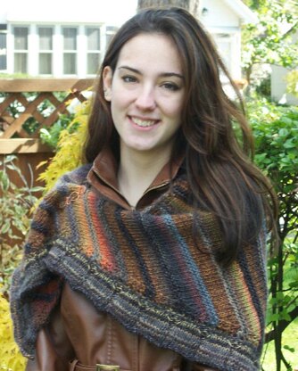 A sideways shawl worked with 2 coordinating yarns. Two versions are included: one worked with 2 self-striping yarns, and one which pairs a solid & variegated. You choose the style that works best with your yarns!! The garter ridge gives this shawl a beautiful texture; both yarns are carried along the top & are worked into the design, so very few ends have to be worked in! Version A: 55” across x 19” deep after blocking, features a simple ruffled rib edging. Version B: 63” across x 21” deep after blocking, features a double ruffle, worked with both the main & the contrast yarns.