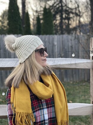 Materials needed: Light worsted weight yarn, 220 yards Size 6 and size 7, 16" circular needles Size 7 double point needles Tapestry needle Optional-faux fur pom pom