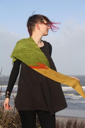 WESTWIND is a minimalistic triangle shawl spiked through with a bold intarsia thorn. The uncomplicated design is perfect for a first intarsia project. The shawl is worked tip-to-tip on the diagonal, using increases and decreases to shape the body, and creating a bias fabric that's lovely for showing off variegated yarns.