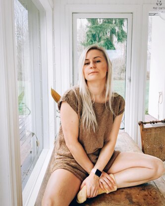 Upgrade your work-from-home wardrobe with our WFH set knitting pattern. This stylish ensemble includes knitted shorts and a basic top, perfect for comfortable and cozy days spent at home.