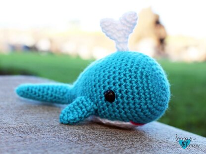 Meet Bailey the Blue Whale! Bailey is the perfect cuddling size for small hands, measuring about 6 inches in length from head to tail, and 4 inches tall from bottom of body to top of spout! For this amigurumi whale, the head/body, tail, fins, and spout are all worked up separately and then sewn together at the end.