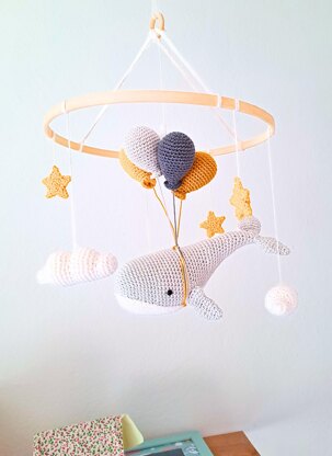 Let your creativity set sail with this dreamy Whale in the Sky Baby Mobile crochet pattern!
