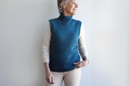 Introducing What She Said – a hip length vest with a tall mock turtle collar, perfect for warming the core. This simple, classic design is worked in Stockinette stitch overall and framed with Broken rib at its edges. It’s a bottom-up seamless design with stitches picked up along the neckline for its collar and along the armholes for their trim. You’ll find this to be a fun and practical, multi-season project, that works up quickly. Enjoy!