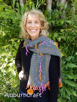 This Fun Scarf is worked using the Filet Crochet technique. It then has chains threaded through the holes created.