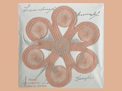 Wheel (salmon) -Size: approx. 51 cm [20 in] diameter -Material: 75 g [2.65 oz] Gründl Häkelgarn 100 -Tools: Steel crochet hook 1.5 mm [US 8 / UK 4½]