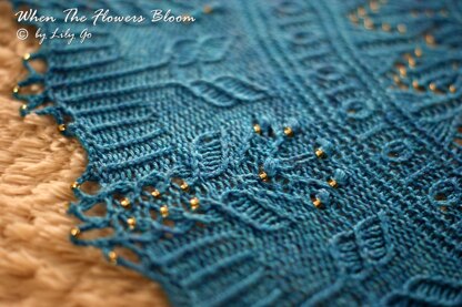 When The Flowers Bloom is a half-circle shaped shawl worked from the bottom up. The pattern is worked both wrong and right side but it is easy enough to memorize and knit. Pattern includes charts and row by row written directions. If you would like to add beads to your shawl, instructions are included on where to place the beads (you need 2 sizes beads).