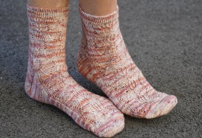 Approximately 55 (68, 80) g / 255 (315, 370) yds / of fingering weight yarn. Shown in Cape May Fiber Co Sock (75% super wash merino, 25% nylon; 463 yds/ m per 100g skein) in Ephemera in Size Med.