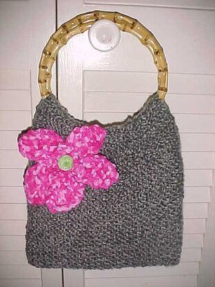 This purse is lined as well and the process is explained in detail. It has a crocheted flower on the front for decoration and instructions for this flower are included. This is a very quick and easy project. No machine sewing required!