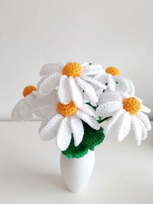 Would you like to make your own flower to decorate your home? The flowers that can last so long time that will never wilt and you don't need to water them. Try these daisy flowers, you will enjoy crocheting them. Skill needed : crochet skill Intermediate Measurement : 6.5 cm x 6.5 cm