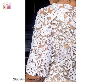 Modern crochet Irish lace pattern . A detailed pattern for all crochet motifs - a graphic diagram, a photo and a verbal description of each crochet row. Design work by Starostina Olga.