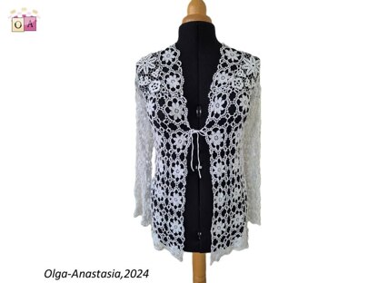 White Lace Wedding Cardigan "December" Modern crochet Irish lace pattern . A detailed pattern for all crochet motifs - a graphic diagram, a photo and a verbal description of each crochet row. PDF file for 60 pages Design work by Starostina Olga.