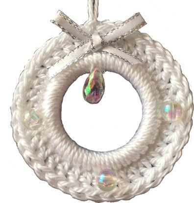 There are 7 variations of the pattern to try. The pattern is worked on a plastic ring of 25mm diameter. The main stitches are double and treble crochet (UK terms) Decorations and colour cotton are open to personal choice!