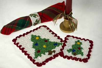 It’s time to trim the tree with our wiggly crochet Christmas Tree hot pad and coaster. The hot pad is perfect for your Christmas meal hot dish while the coaster keeps surfaces unharmed from water rings. And they make great gifts, too!