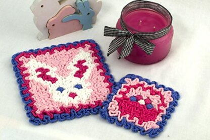 Our wiggly crochet Easter Bunny hot pad and Easter Basket coaster will have you grinning from ear to ear (bunny ears, that is!). The hot pad is perfect for your Easter meal hot dish while the coaster keeps surfaces unharmed from water rings. And they make great gifts, too!