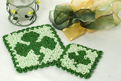 “Top o’ the mornin’ to you”! You’ll have the “luck of the Irish” with this wiggly crochet Shamrock hot pad & coaster set! The hot pad is perfect for your hot corned beef and cabbage dish while the coaster keeps surfaces unharmed from water rings. And they make great gifts, too!