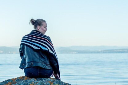 Wild Bird has an unusual garter stitch shape with graphic inserts for a dramatic effect. The beauty of this pattern is that you can make it with any weight of yarn, from light fingering to super bulky. It’s also a beautiful way to use your precious scraps, while using different colors for each insert.
