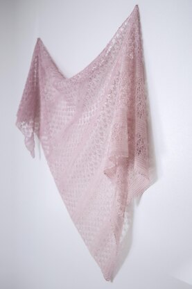 Yarn: Approximately 676 m / 740 yds of lace weight yarn. Shown with Madelinetosh Prairie (100% Merino; 768 m / 840 yds per skein) in colourway Rose.