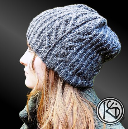 Inspired by the glorious Pacific Northwest, where the wild ferns grow, well…wild! To take a hike in the PNW is to take a walk among these wild ferns. The graceful rows of eyelets in this hat alternate with twisted ribbing, reminiscent of delicate ferns interspersed between mossy tree trunks.