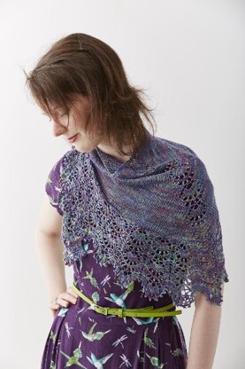Adding beads to the edge of this cosy but lightweight shawl (as shown in the red version) gives it just the right amount of drape to sit nicely on your shoulders, but adding beads all over (as shown in the purple variegated version) gives a really stunning effect.