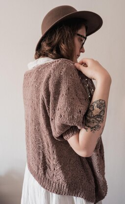 When I started to work on this design I wanted to create something special for the hotter months. Something to give a twist to a linen dress or something different to wear with a tank top. Wild Primrose is a bolero made with soft baby yak lace used double. It’s cut pretty short being a bolero, but you can decide to keep working the body motif until you arrive at your desired length. It’s designed to be worn open in the front, but it can easily close with a nice brooch or with wooden buttons. Wild Primrose is worked from the top down using circular needles and raglan increases. The sleeves are put on hold while you work the body. When you pick up the stitches to make the sleeves you can decide to leave them wide (like a kimono sleeve) or to make them puffy (this means making some decrease). The stitches used in this pattern are quite simple: knit, purl and a bit of very simple lace using yarn overs.