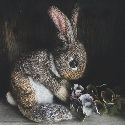 I’ve knitted my rabbit with dual colour/ double-up wool fingering yarns plus kid silk to create the blend of rabbit fur tones