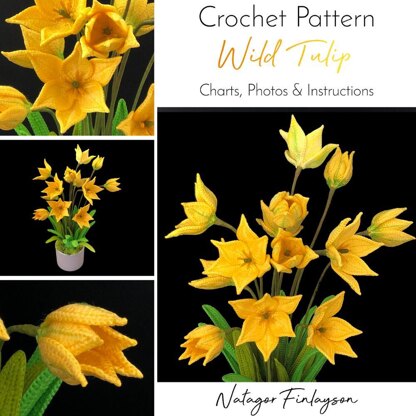 In this Wild Tulip crochet pattern are instructions, charts, photos, and detailed assembly instructions for a crocheted 3D crochet Wild Tulip flower. It contains 32 pages in downloadable PDF document format. This crochet pattern includes stitch diagrams (or charts), instructions in the English language (in US terms) and detailed step-by-step photo guides that will show you how to crochet and assemble this flower and all leaves.