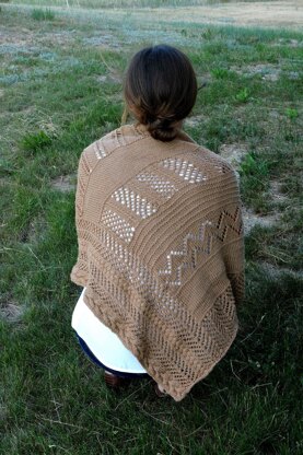 Lace and cables unite! The Wilderness Shawl was inspired by the change from winter to spring. Melting puddles changing to green grass, and flowers sprouting from under the snow. Lara wanted to knit a shawl from worsted weight yarn that would be beautiful to wear, and had both lace and cables. We love the look of lace and cables combined. She also wanted to knit a shawl that is unique and has different stitches put together in a very interesting way.