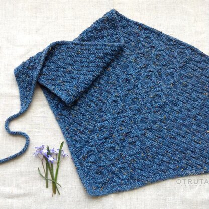Willard Scarf is worked bottom up from center corner with cables and textured pattern ending with I-cord bind off with or without ties.