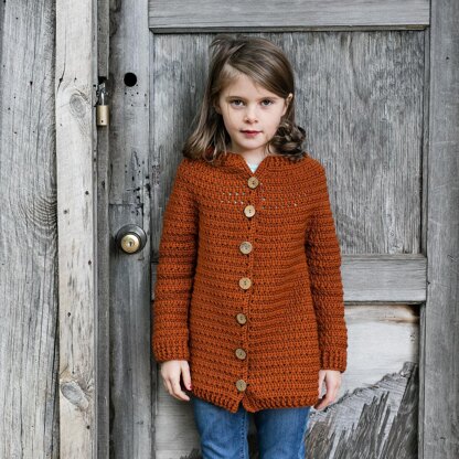The Willow Crochet Sweater Pattern makes a cozy cardigan in SIX children's sizes. With a circular yoke construction, the body is made all in one piece with the sleeves added last. This is a great method for children's sweaters because it's worked from the top down and you can try it on as you go.