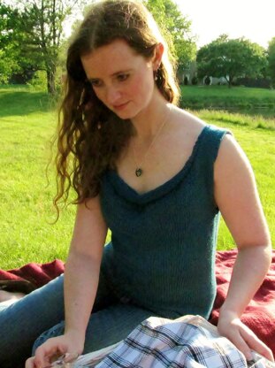 This sleeveless top is perfect for warm, breezy summer days. The silk blend adds a glamorous but breathable shine to an otherwise simple shirt, making it ideal for those hot outdoor days where you want something just a tiny bit special to wear. The flattering short-row neckline and waist shaping enhance curves, while the broader shoulders and shallower armholes provide coverage where you need it.