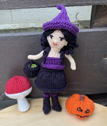 Welcome to my little knitting pattern Willow the cute little Witch. She is complete with her fabulous witch hat, cauldron and pumpkin.