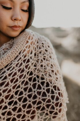 *"... a tumbleweed slowly making its way across a desolate landscape..."These words from the TFDF call for submission inspired this design. Wind Witch is another word for tumbleweed. The solid stitch pattern symbolizes the earth and the road, and lacy wheels stir up notions of going where the wind will take you. No specific edging is added to this shawl to preserve the raw simplicity of it. Just like nature, it doesn't need embellishments.