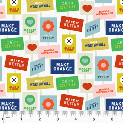 This collection is inspired by headlines, advertising, television news graphics, protest signs, voting ballots and creative manifestos. Entitled Breaking News, this collection turns media into positive messages and encouraging words of positive action and self care. 17 Bold prints to make your statement.\nThis fabric is sold by the meter (m) rather than by the yard so you get a little extra. 1 yard = 36” and 1 meter = 39.