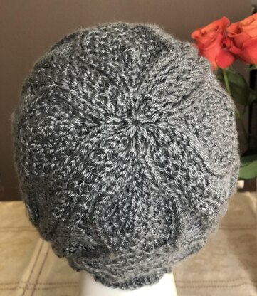 This hat features a winding "river" of moss stitch framed with columns of twists and purls. This easily memorized pattern is a joy to knit and results in a stretchy, lightweight, yet warm accessory for fall and winter. DK or light worsted works best for this hat. Fits sm/lg adult