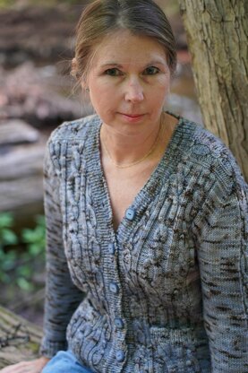 The Winding Roads Cardigan features three sizes of the same cable arranged in an interesting way making the pattern super easy and fun to work. Worked top down starting with construction of the saddle shoulders and horizontal back neck panel. Stitches for the body are then picked up and worked in one piece to the armhole with a contiguous style of shaping for the set-in sleeves. Optional pockets, and instructions for long or ¾ length sleeves allow for a variety of ways to make this your own.