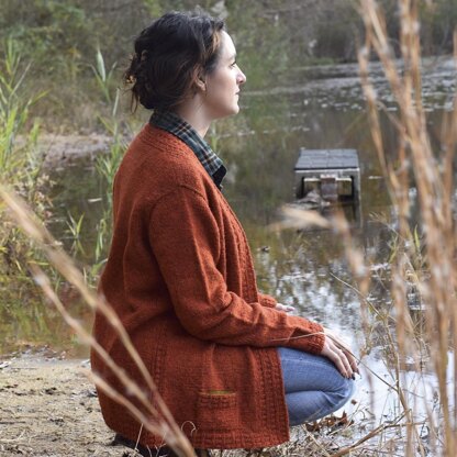 Walking along the path at dusk on a brisk autumn day, you pull up the collar and wrap yourself up in Windwhistle. The open-front, A-line cardigan has cozy knit/purl texture at the collar, bands, and running along the side “seams” to create a classic sweater for your wardrobe.