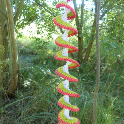 A Wind Spinner that will bring color and zen attitude to the garden. A really easy model to make in a few hours. This one is made of medium cotton (hook 2.5 / 3) but you can use thinner or thicker cotton depending on the desired effect. The proposed model measures about 80 cm, it can of course be made shorter or longer. The finish (a light weight to unfold the wind spinner) with a spiral can be replaced by a pompom or some beads. The model is made in three colors to facilitate the reading of the tutorial but it can also have more colors or be made in one color. For the first two colors (rows 1 to 3), a small amount of yarn is enough, but you need more for the other two rows. The PDF tutorial contains 2 main schema's, 11 detailed schema's and 65 pictures to show the "how to" step by step.