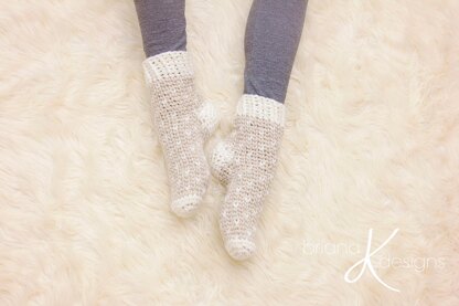 The look of knit but in crochet! Super comfy and warm especially when that winter chill hits! Bring on the snow because toes will stay warm :)