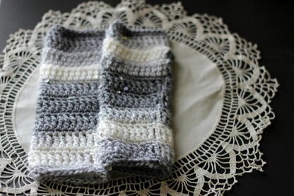 Crocheted in wintry shades of white and gray, in a yarn with sequins scattered throughout to add some sparkly charm, these cute gloves would make a gorgeous Christmas present or hostess gift this holiday season!