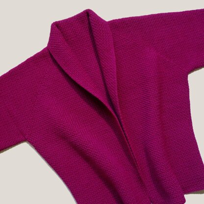 Use a neat moss stitch. Working from the top downwards without seams, begin at the back of the neck and proceed in this order -- collar, yoke, body, edging, sleeves. Choose options for collar shaping and front overlap.