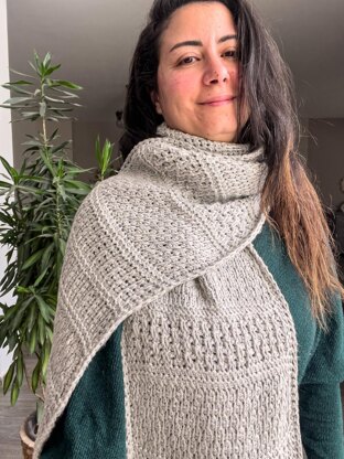 Winter notes wrap is a gorgeous rectangle, wide and stunning textured scarf. The scarf uses basic stitches, Tunisian knit stitch, Tunisian purl stitch, Tunisian simple stitch and Tunisian double crochet stitch.