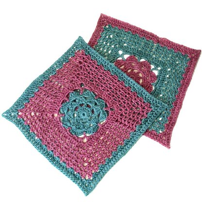 Lovely center motif surrounded by the V-stitch. Worked up specifically in fingering weight yarn for an 8" square.