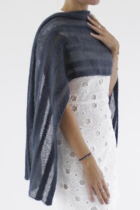 Inspired by winter trees silhouetted against cold skies, this perfect evening shawl plays with luxurious contrasts made in simple stripes. The sheer mohair/silk stripes give a hint of what’s hiding underneath, so you don’t feel that your party dress has vanished under a big wrap. The irregular widths of the stripes keep it modern and interesting to knit. This is a perfect TV or knit-night project for a more experienced knitter. I believe knitting doesn’t have to be difficult to be beautiful.