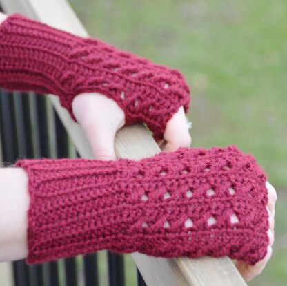 The fingerless mitts are worked flat in rows and then joined at the side, just leaving a few stitches for the thumbhole and there you have it! The top section has a super easy crochet cable stitch that you'll master in no time.