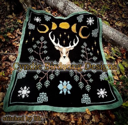 This beautiful Winter Solstice Magic blanket is perfect for the Holidays, Christmas gifts, or to snuggle under on cool fall & winter evenings. It uses the overly mosaic crochet method and features elements of nature, including mushrooms, pine branches, moon phases, snowflakes, with a mighty deer in the center! This pattern includes the written row-by-row instructions, along with single page charts for viewing on devices and a 16-page chart to print out. The single page charts include the multi-color version, the 2-color version with the deer’s facial features, and then another 2-color version with the deer head silhouette. When using medium weight #4 yarn and a 5mm hook, this blanket will measure approximately 48” x 55”, not including an optional border, and takes approximately 2800-3000 yds of yarn. You can use other yarn weights, just be sure to use the recommended hook for your yarn. Pattern written in US crochet terms.
